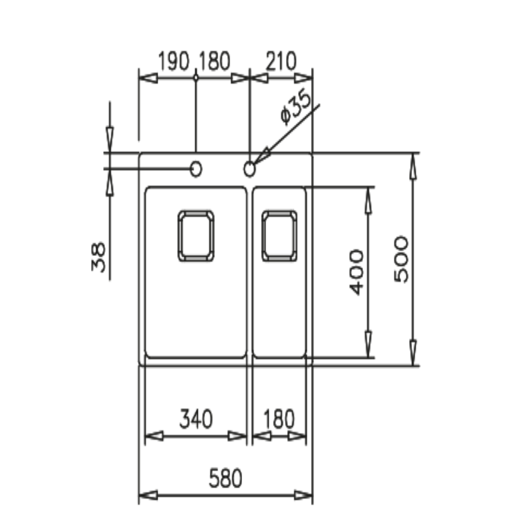 Dimensiuni exterioare: L 580 mm x l 500 mm