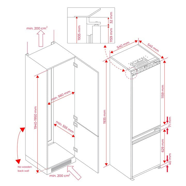 Combina frigorifica incorporabila Teka RBF 77360 FI , 284 l, Panou electric, 193.5 cm, LongLife No Frost, clasa E