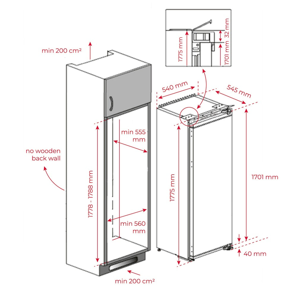 Măsuri de montare: Înălțime încorporată (mm): 1775