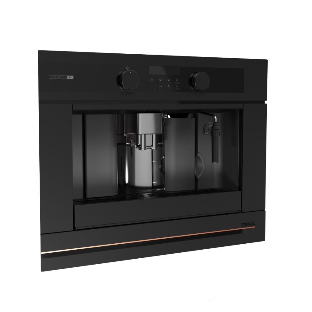 Espressor încorporabil Teka CLC 85-G1 GM BM, 2 cesti, cu cafea boabe sau cafea măcinată, 30 programe, presiune 15 bar, Negru matcu detalii metalice cupru