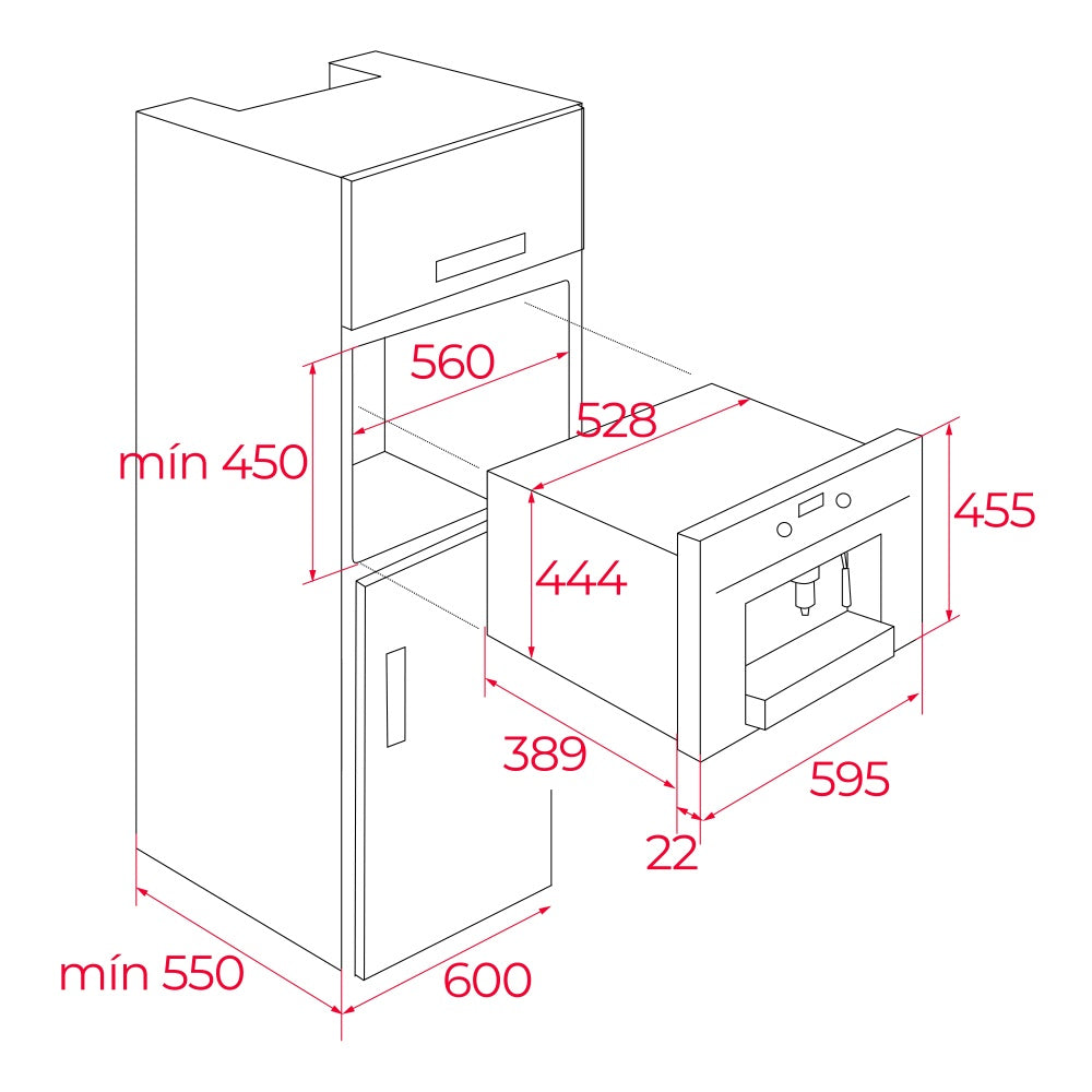 Adancime incorporata (mm): 550