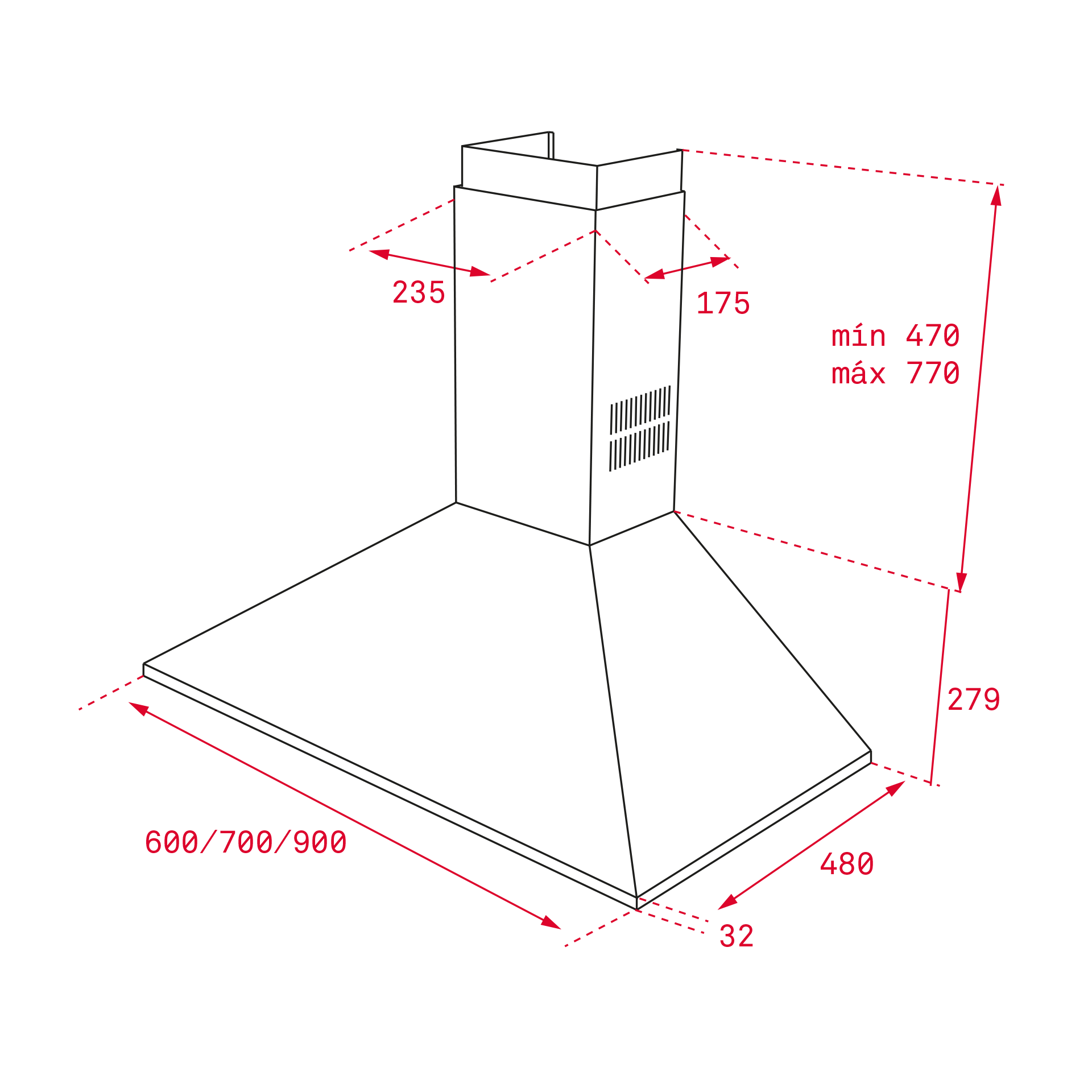 Hotă şemineu, formă piramidă, Teka DBB 60, 60 cm, Negru