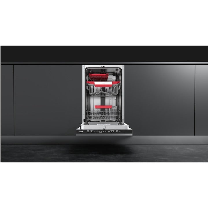Masina de spalat vase Teka DFI 44850, complet incorporabila, 10 seturi, 6 programe de spalare, balamale glisante 45 cm, clasa E