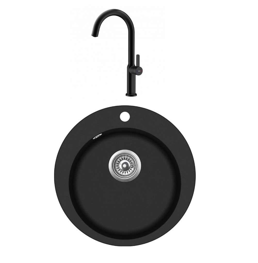 Pachet chiuveta bucatarie Teka Clave 45 B-TQ 1B T, 505 x 505 mm Schwarzmetallic plus baterie Teka OVAL 915 Negra
