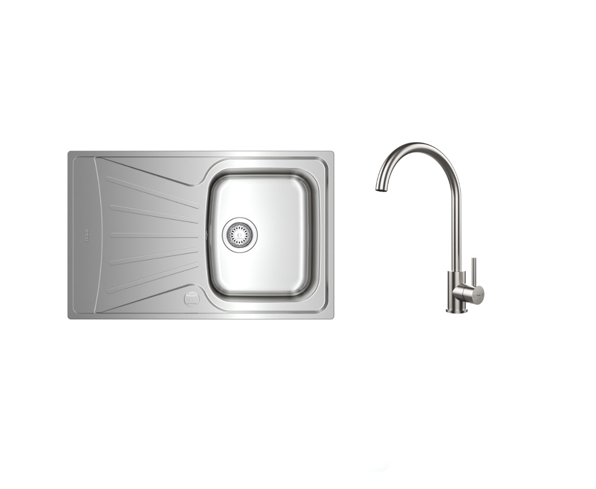 Pachet chiuveta bucatarie Teka TEKAWAY STARBRIGHT 45 E-XP 1B 1D, 790 x 500 mm si baterie Teka UNI 9310 XP, inox