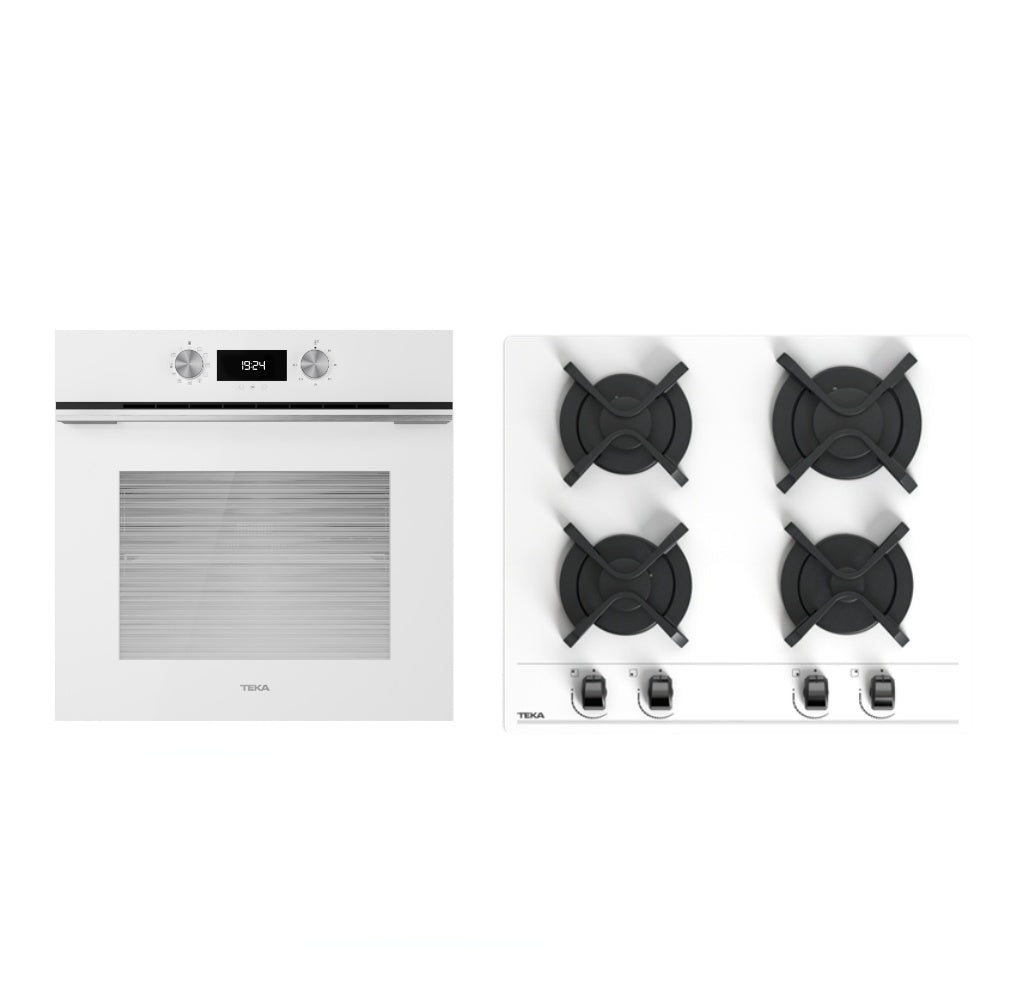 Pachet Cuptor incorporabil Teka HLB 8400 WH, 70 litri, HydroClean PRO plus Plita incorporabila pe Gaz, Teka GBC 64000 KBC WH , 4 arzatoare, 60 cm, cristal alb