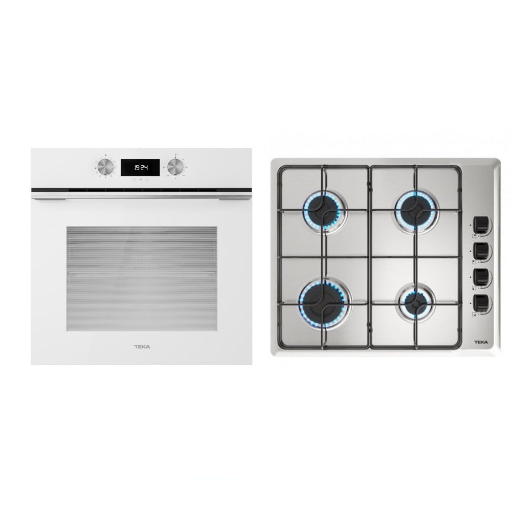 Pachet Cuptor incorporabil Teka HLB 8400 WH, 70 litri, HydroClean PRO plus Plita incorporabila pe Gaz, Teka HLX 640 IX , 4 arzatoare, 60 cm, inox
