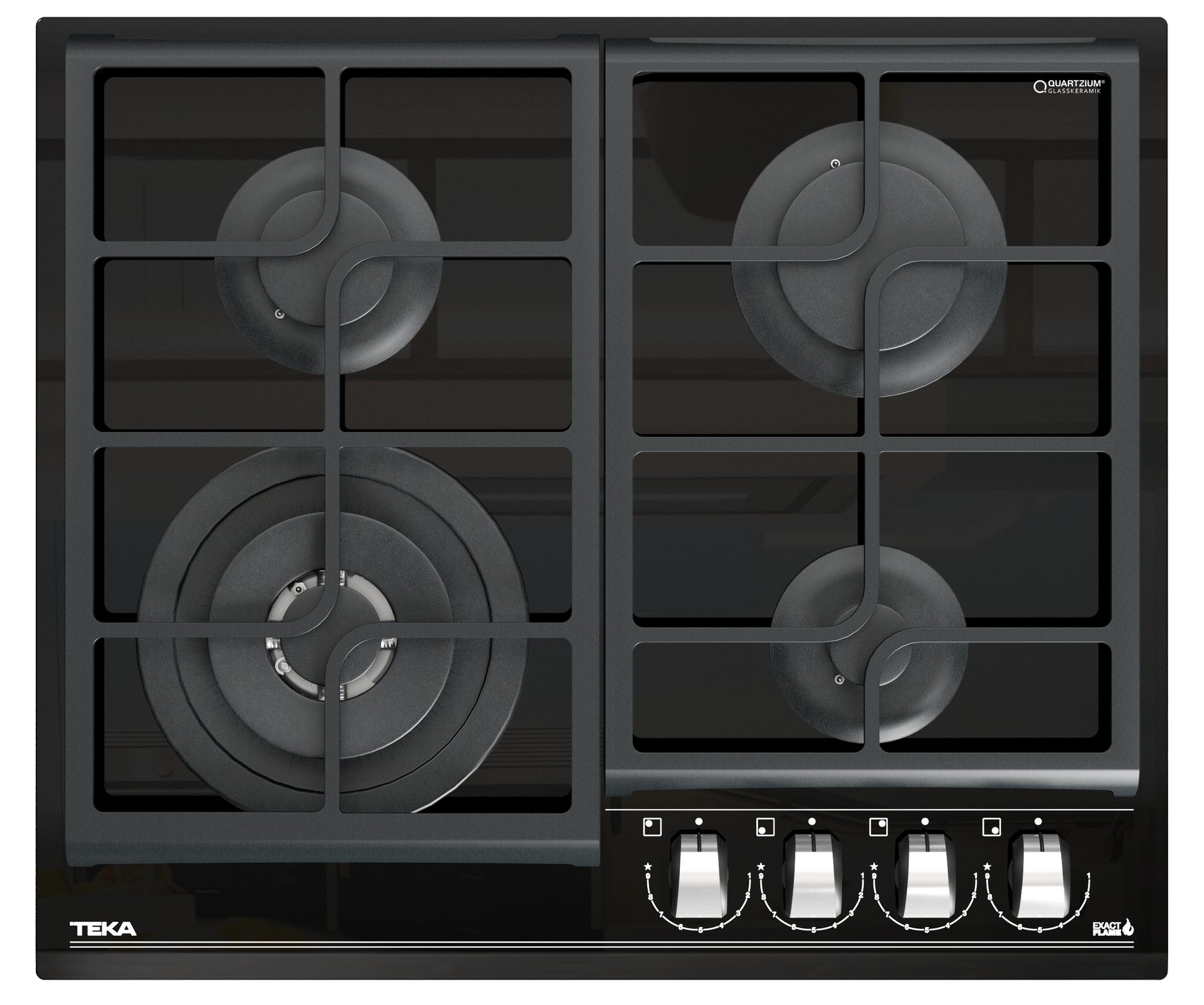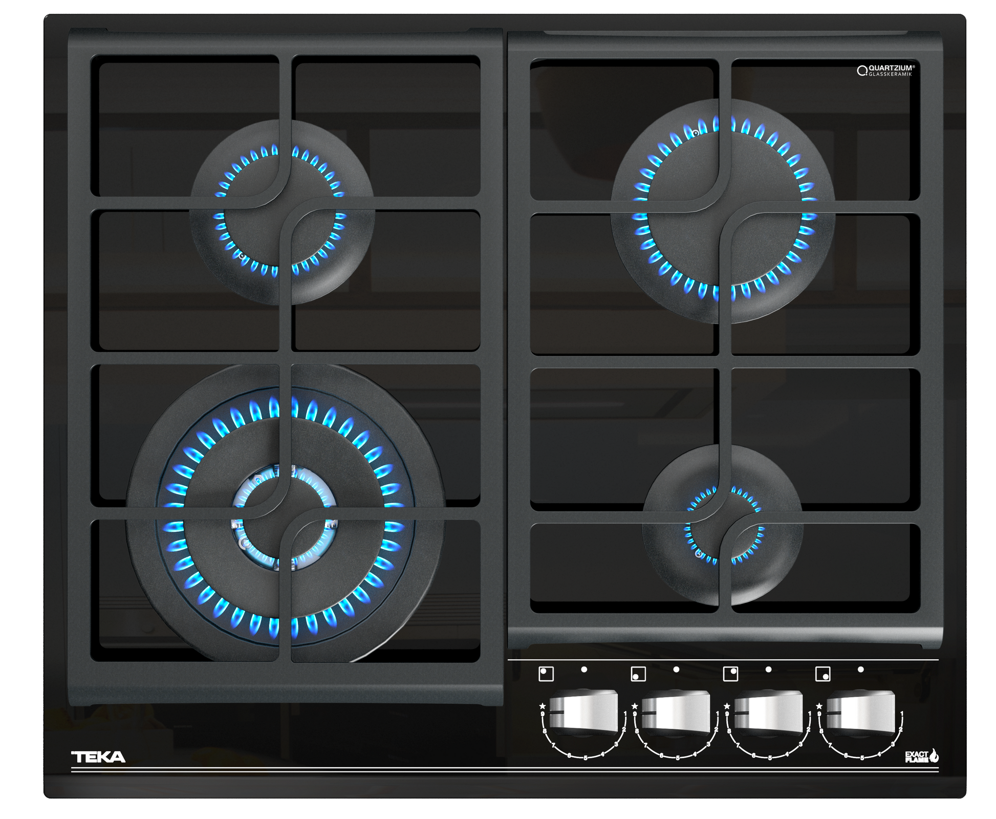 Plita pe gaz din cristal cu sistem ExactFlame si muchie frontala fatetata, 60 cm