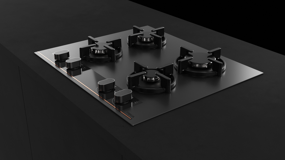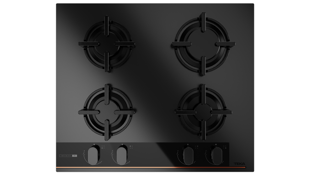 Plita pe gaz Teka GBC 64-G1 GBC BM, 4 ochiuri, 60 cm, gratare fonta, sticla neagra mata