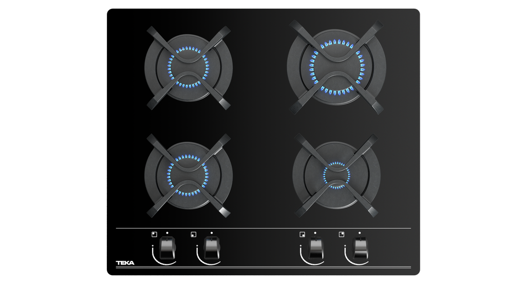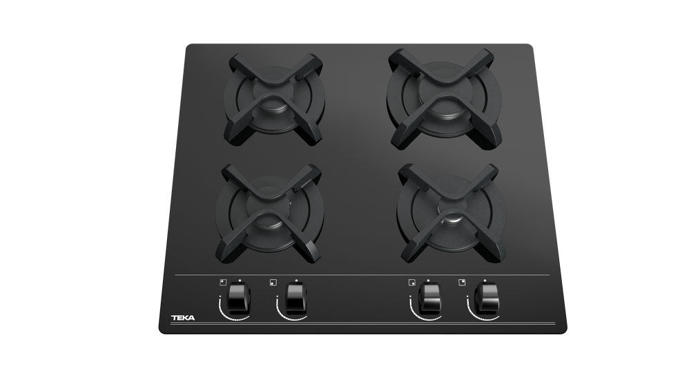 Plita pe gaz Teka GBC 64000 BK,4 zone de gatit, 60 cm, Sticla Neagra