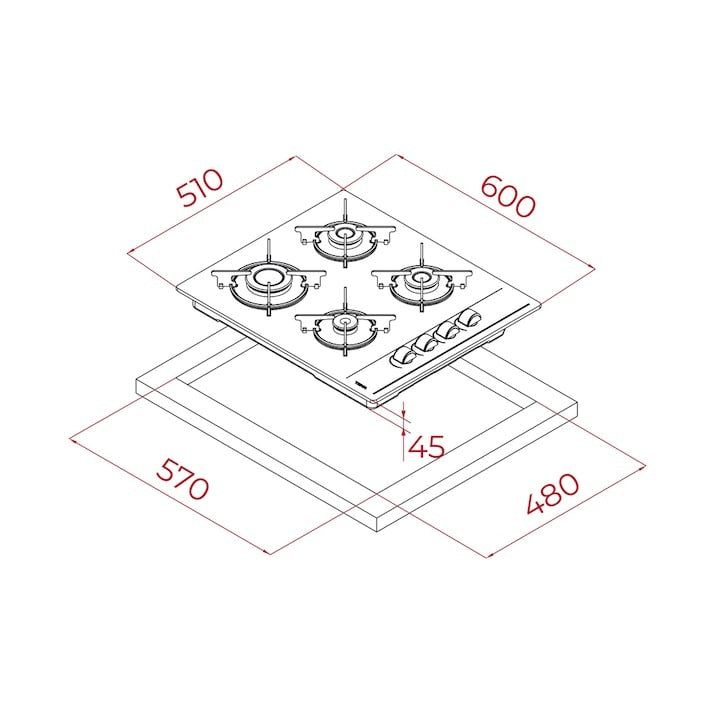 Plita pe gaz sticla 60 cm